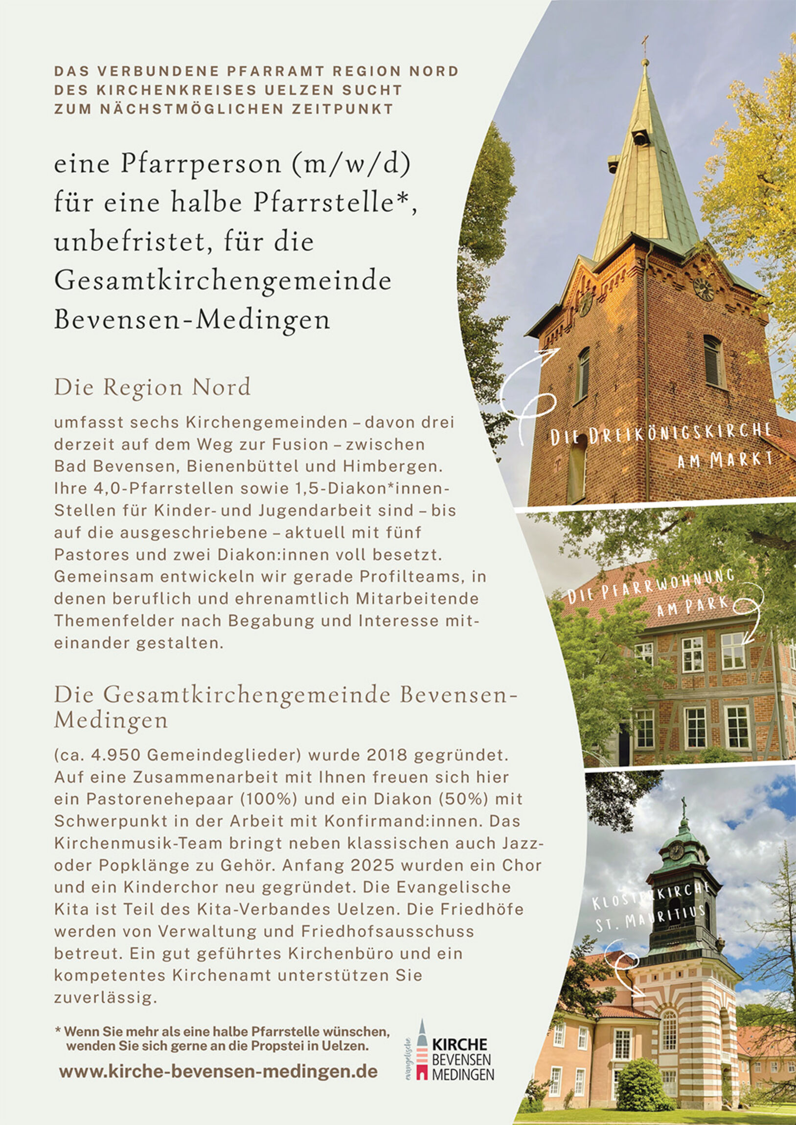 * Wenn Sie mehr als eine halbe Pfarrstelle wünschen, wenden Sie sich gerne an die Propstei in Uelzen.